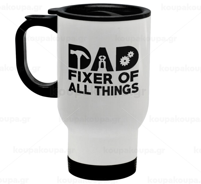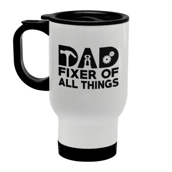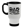 DAD, fixer of all thinks, Stainless steel travel mug with lid, double wall white 450ml