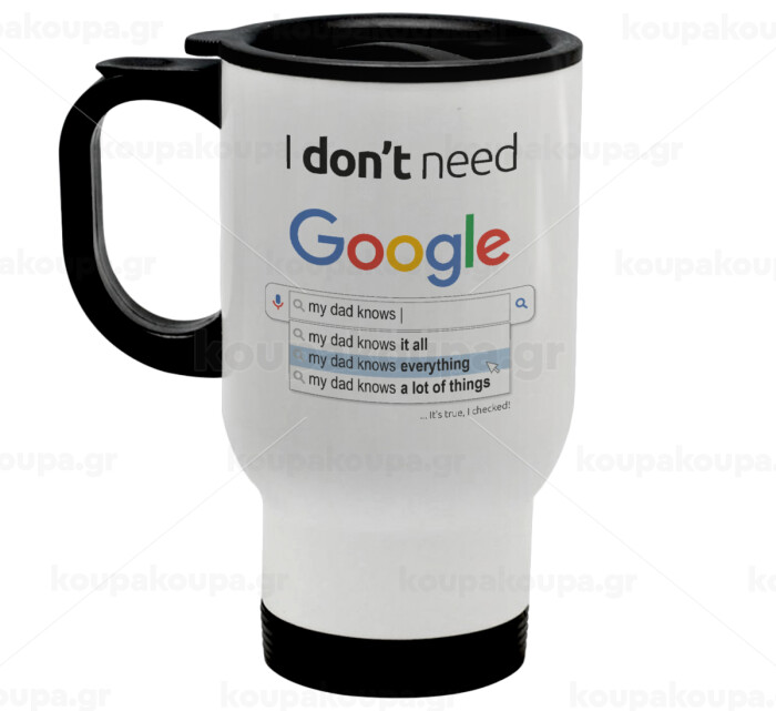I don't need Google my dad..., Stainless steel travel mug with lid, double wall white 450ml