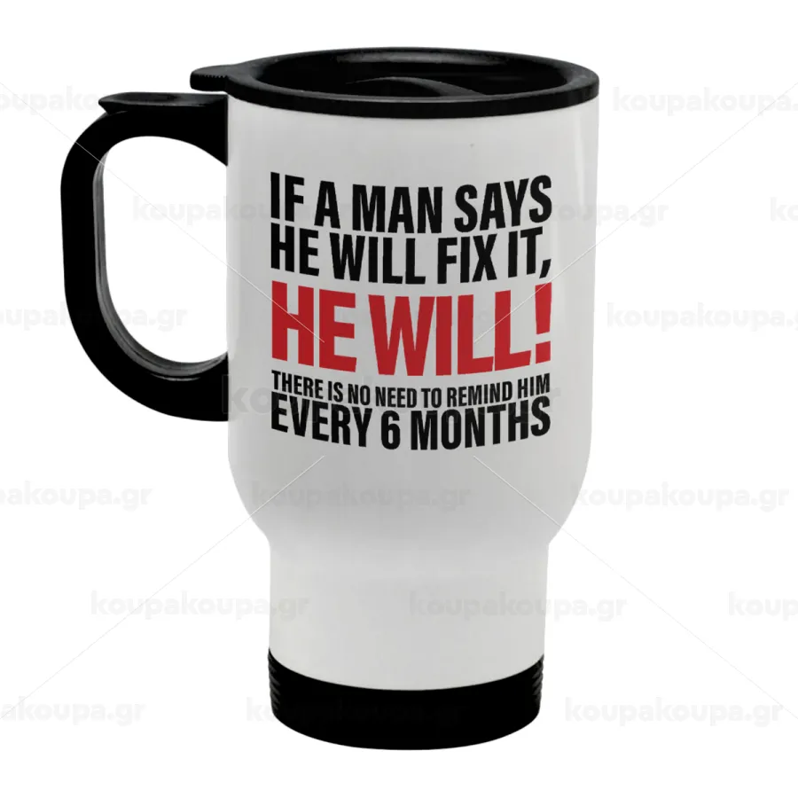 If a man says he will fix it He will There is no need to remind him every 6 months, Stainless steel travel mug with lid, double wall white 450ml