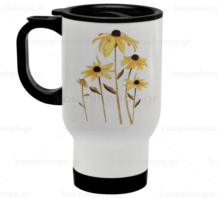 Daisies flower, Stainless steel travel mug with lid, double wall white 450ml