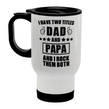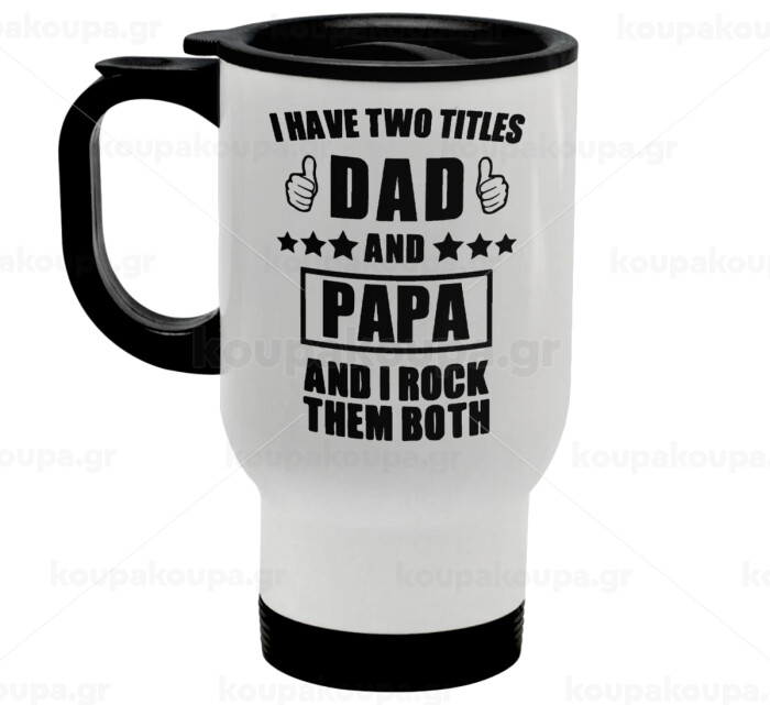 I have two title, DAD & PAPA, Stainless steel travel mug with lid, double wall white 450ml