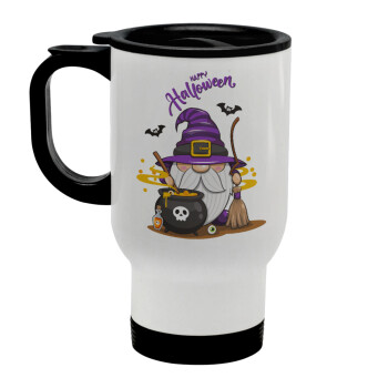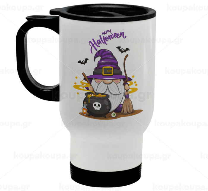 Happy Halloween (Χαλοουίν), Stainless steel travel mug with lid, double wall white 450ml