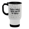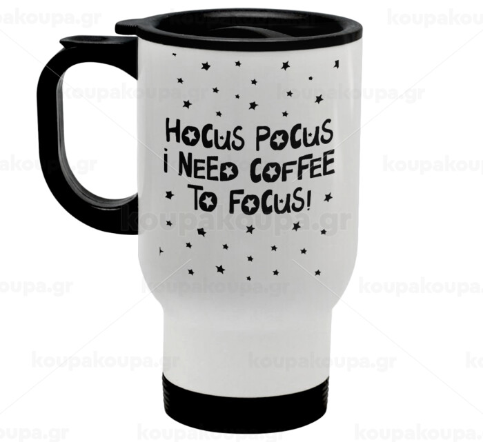 Hocus pocus i need coffee to focus - halloween, Stainless steel travel mug with lid, double wall white 450ml