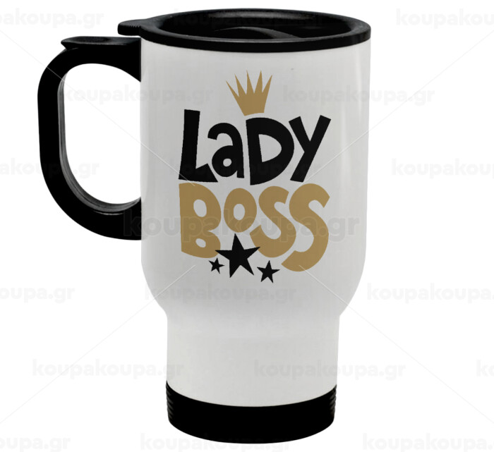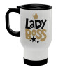 Lady Boss, Stainless steel travel mug with lid, double wall white 450ml