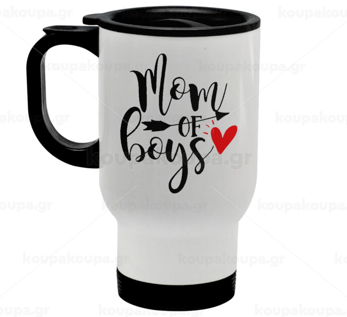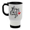 Mom of boys, Stainless steel travel mug with lid, double wall white 450ml