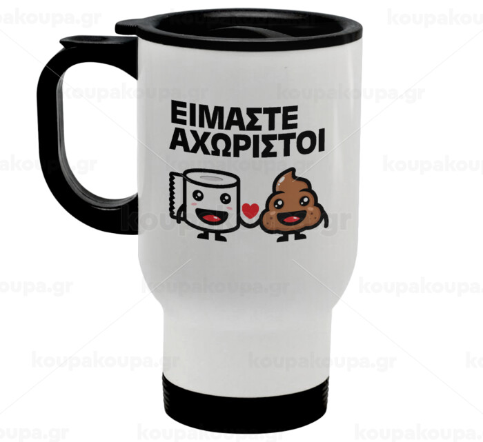 Είμαστε αχώριστοι, Stainless steel travel mug with lid, double wall white 450ml