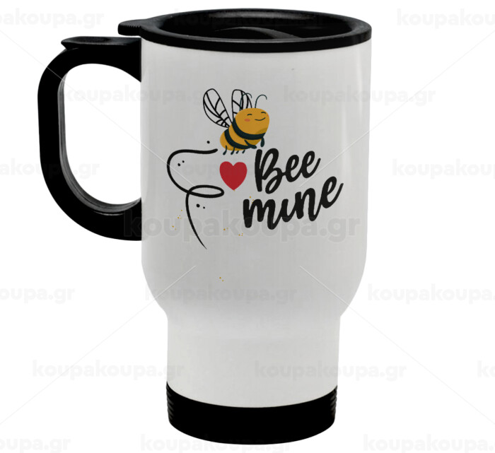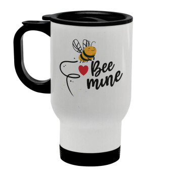 Bee mine!!!, Stainless steel travel mug with lid, double wall white 450ml