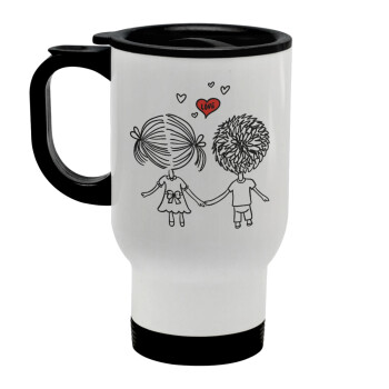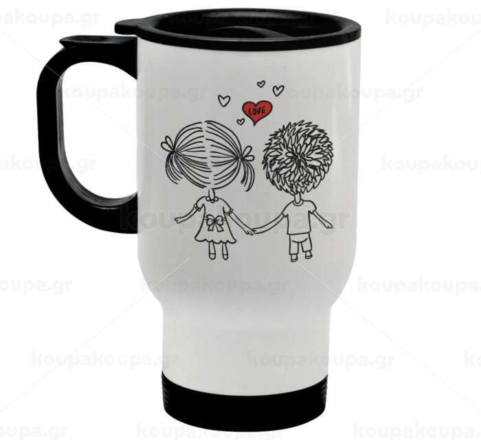 Hold my hand for ever, Stainless steel travel mug with lid, double wall white 450ml