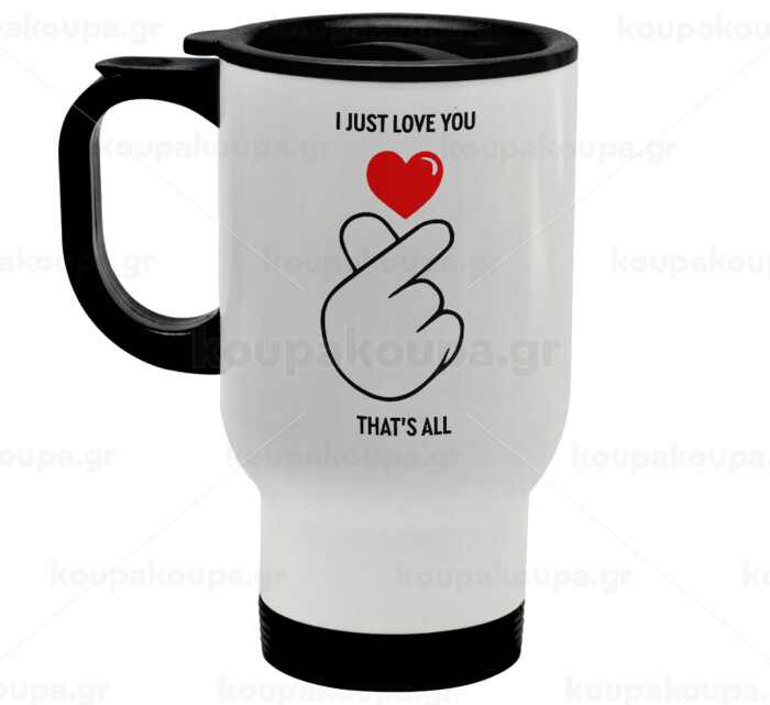 I just love you, that's all., Stainless steel travel mug with lid, double wall white 450ml