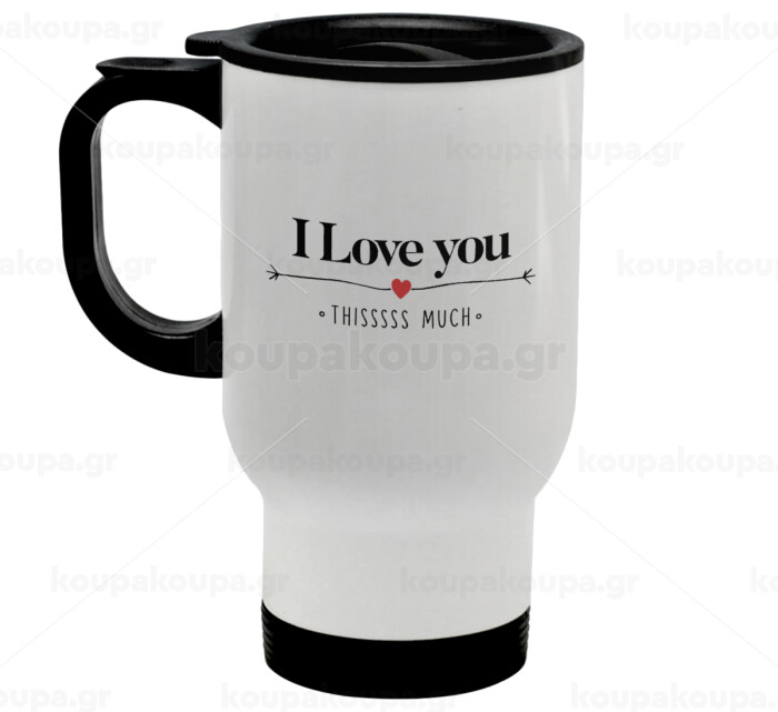 I Love you thisssss much, Stainless steel travel mug with lid, double wall white 450ml