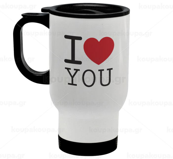 I Love you classic, Stainless steel travel mug with lid, double wall white 450ml