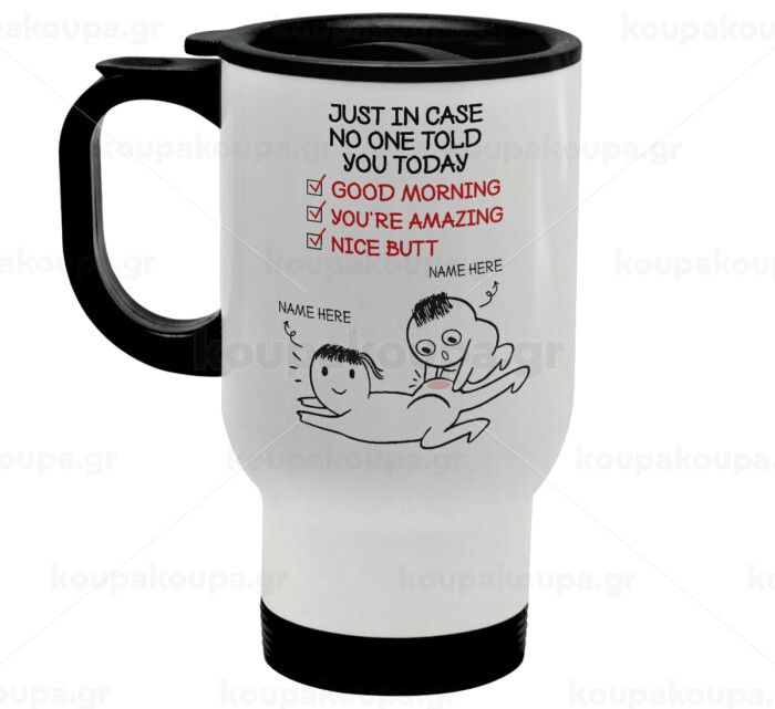 Just in case no one told you today..., Stainless steel travel mug with lid, double wall white 450ml