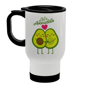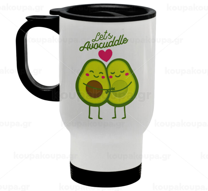 Let's avocuddle, Stainless steel travel mug with lid, double wall white 450ml
