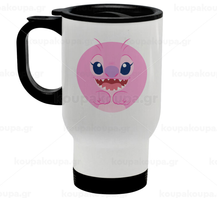 Lilo & Stitch Angel pink, Stainless steel travel mug with lid, double wall white 450ml