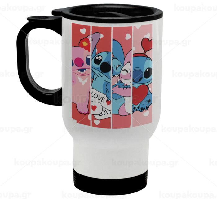 Lilo & Stitch Love, Stainless steel travel mug with lid, double wall white 450ml