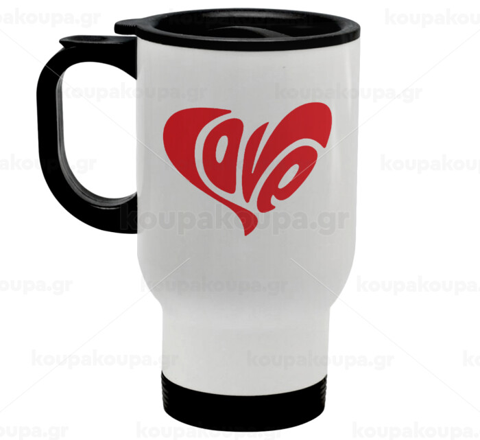 Love, Stainless steel travel mug with lid, double wall white 450ml