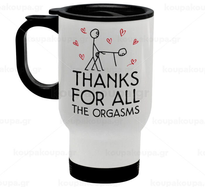 Thanks for all the orgasms, Stainless steel travel mug with lid, double wall white 450ml