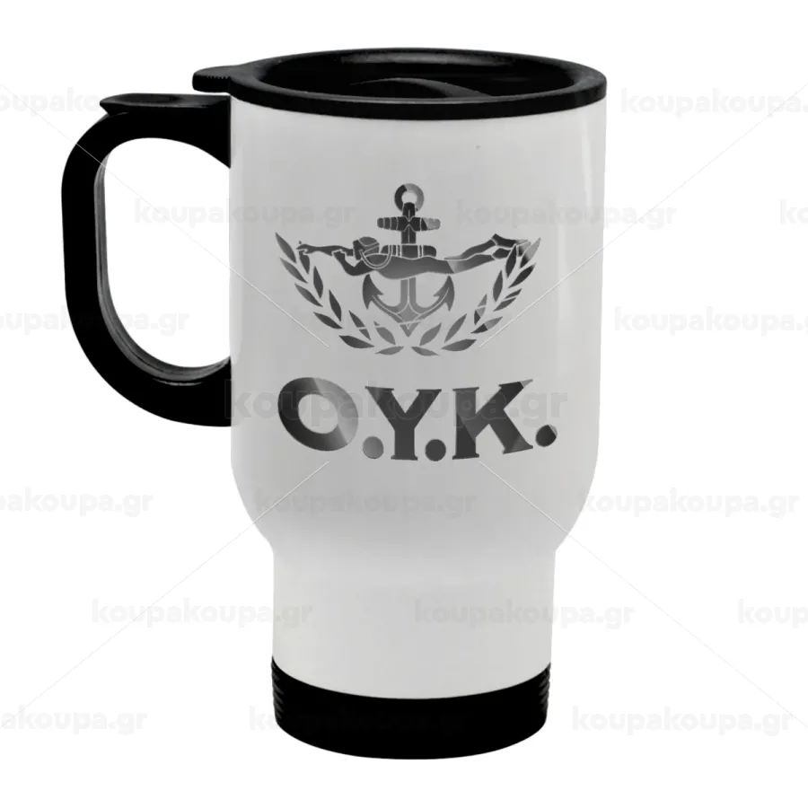 Ο.Υ.Κ., Stainless steel travel mug with lid, double wall white 450ml