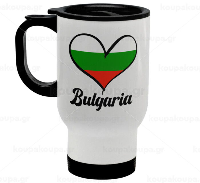 Bulgaria flag, Stainless steel travel mug with lid, double wall white 450ml