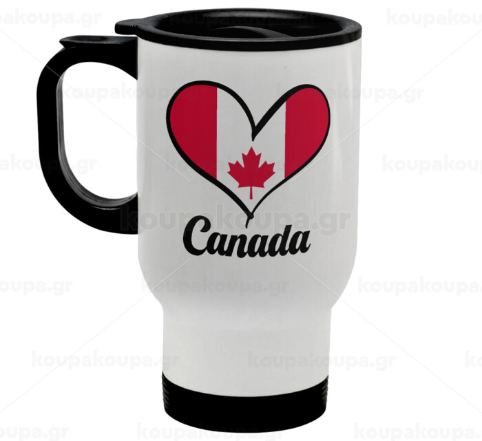 Canada flag, Stainless steel travel mug with lid, double wall white 450ml