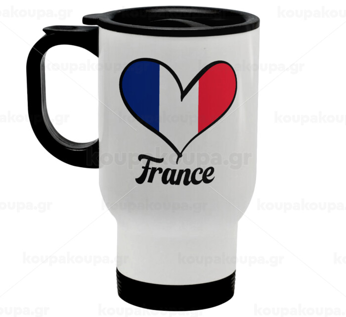 France flag, Stainless steel travel mug with lid, double wall white 450ml