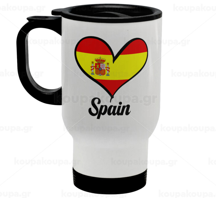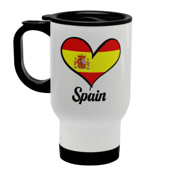 Spain flag, Stainless steel travel mug with lid, double wall white 450ml