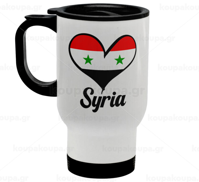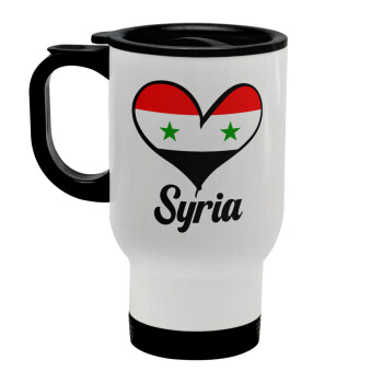 Syria flag, Stainless steel travel mug with lid, double wall white 450ml