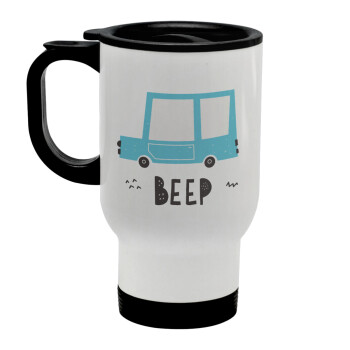 Car BEEP..., Stainless steel travel mug with lid, double wall white 450ml