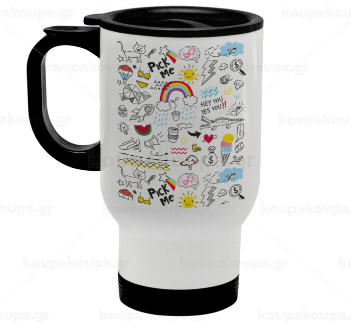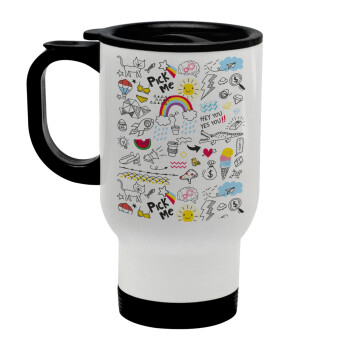 Doodle kids, Stainless steel travel mug with lid, double wall white 450ml