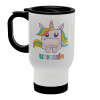 Unicorns cube, Stainless steel travel mug with lid, double wall white 450ml