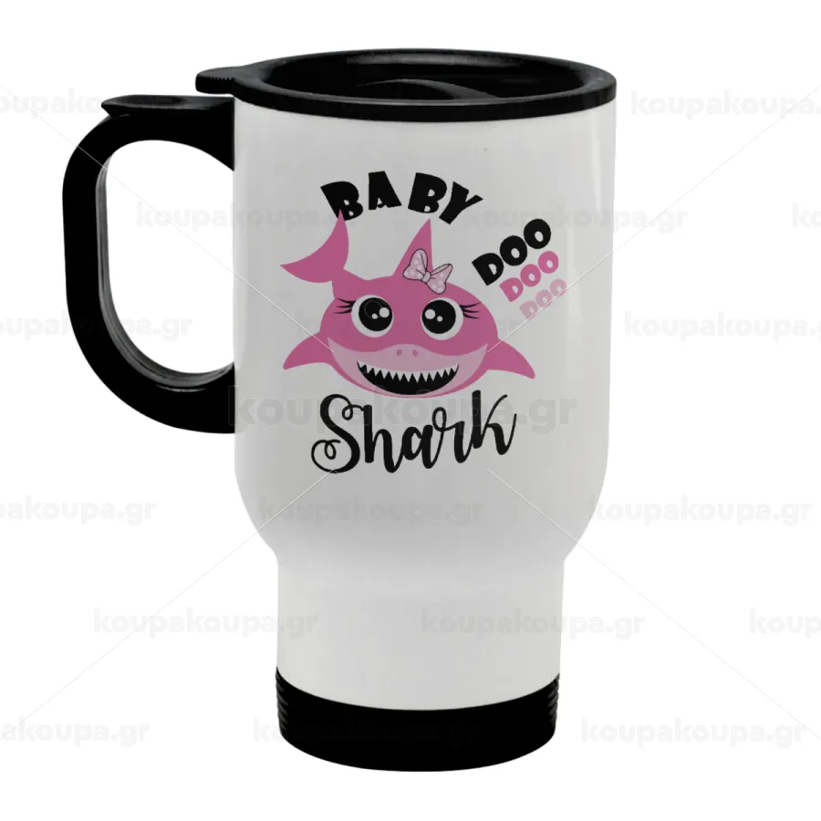 Baby Shark (girl), Stainless steel travel mug with lid, double wall white 450ml