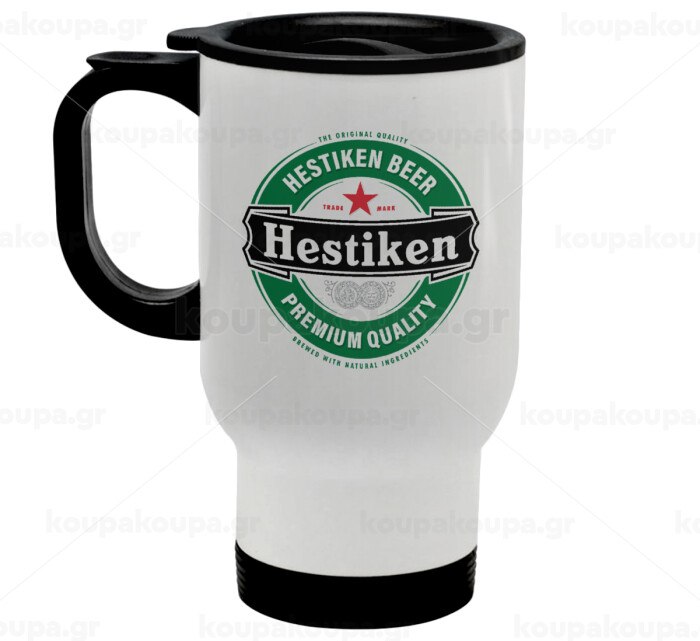 Hestiken Beer, Stainless steel travel mug with lid, double wall white 450ml