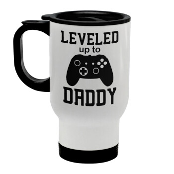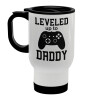 Leveled to Daddy, Stainless steel travel mug with lid, double wall white 450ml