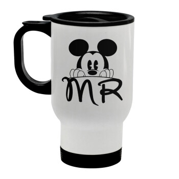 Mikey Mr, Stainless steel travel mug with lid, double wall white 450ml