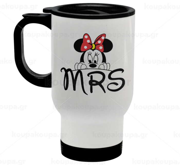 Minnie Mrs, Stainless steel travel mug with lid, double wall white 450ml