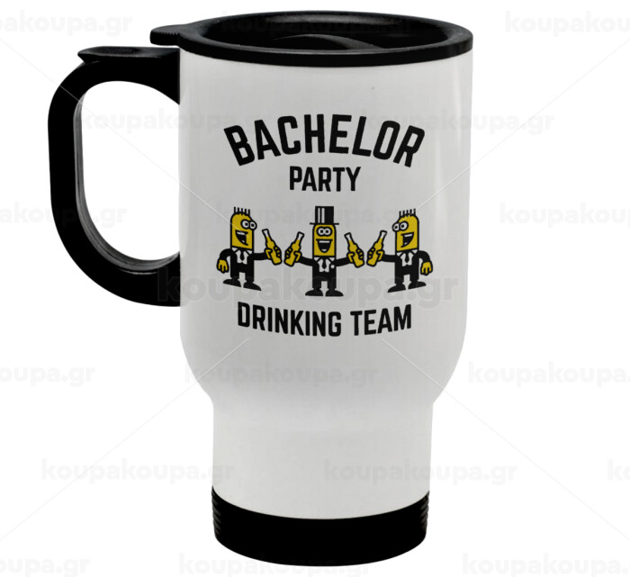 Bachelor Party Drinking Team, Stainless steel travel mug with lid, double wall white 450ml