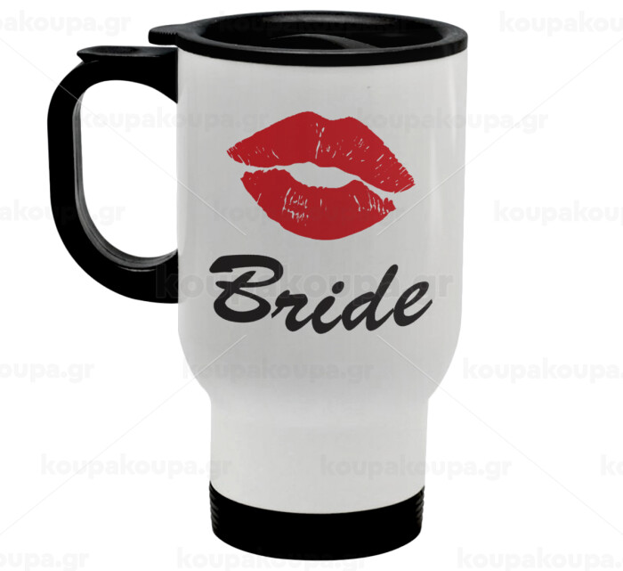 Bride kiss, Stainless steel travel mug with lid, double wall white 450ml