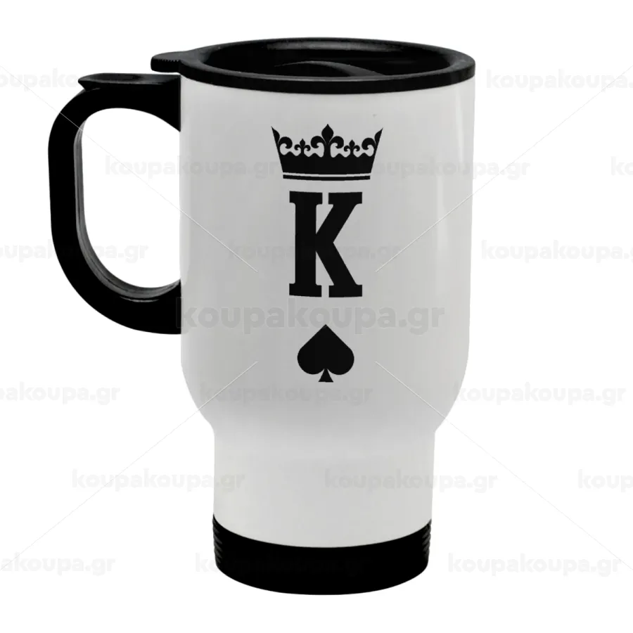 King, Stainless steel travel mug with lid, double wall white 450ml