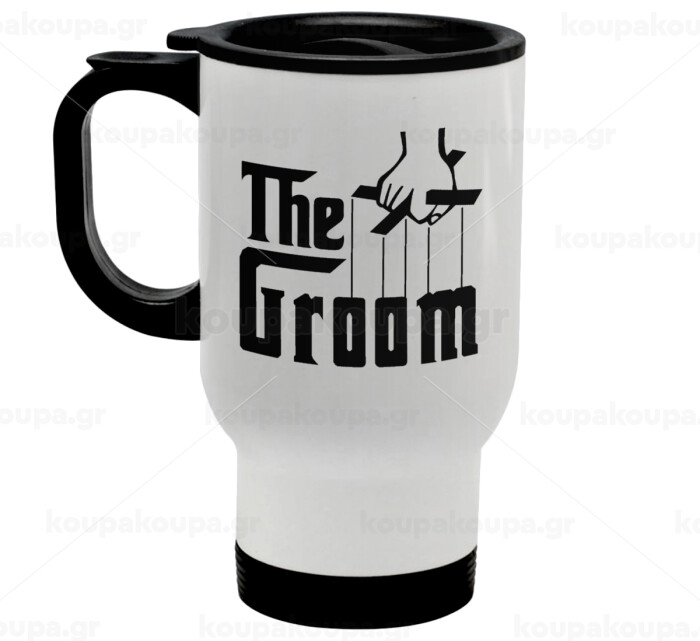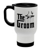 The Groom, Stainless steel travel mug with lid, double wall white 450ml