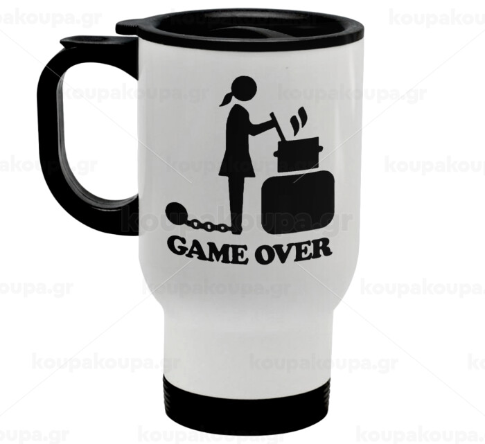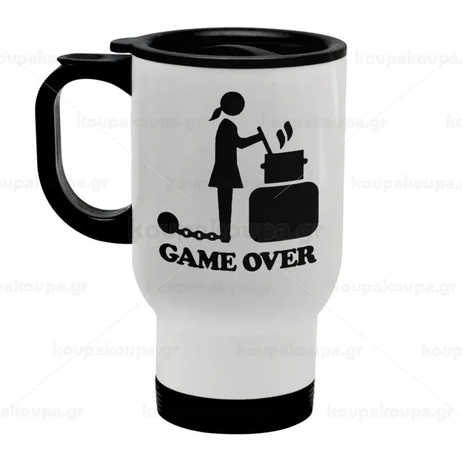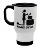 Woman Game Over, Stainless steel travel mug with lid, double wall white 450ml