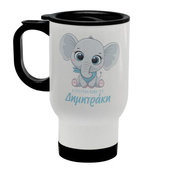 Η νονά μου, ελεφαντάκι γαλάζιο, Stainless steel travel mug with lid, double wall white 450ml