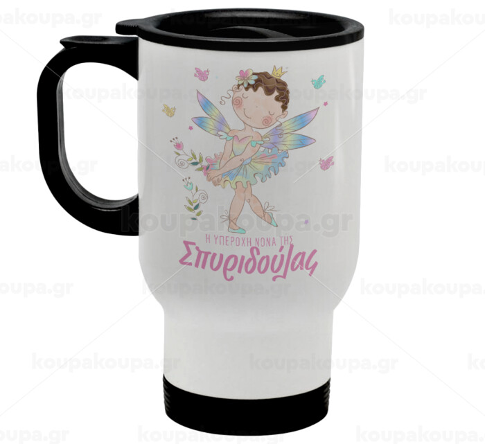 Η νονά μου, Νεράϊδα, Stainless steel travel mug with lid, double wall white 450ml