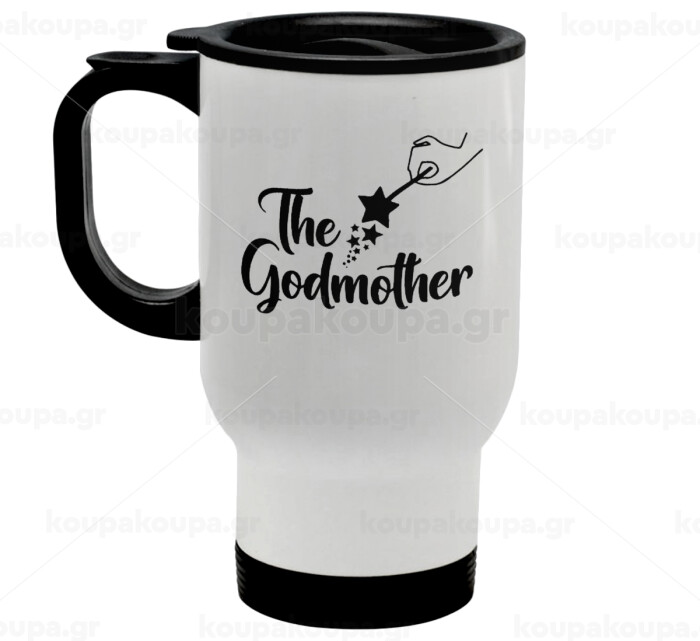 Fairy God Mother, Stainless steel travel mug with lid, double wall white 450ml