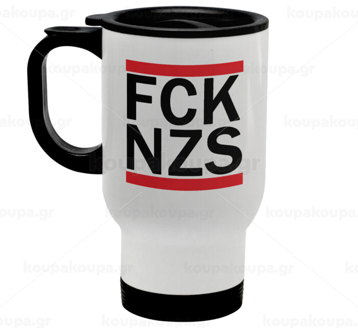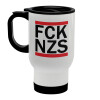 FCK NZS, Stainless steel travel mug with lid, double wall white 450ml