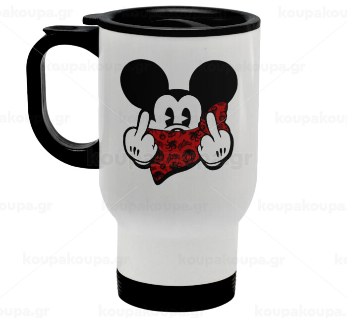Mickey the fingers, Stainless steel travel mug with lid, double wall white 450ml