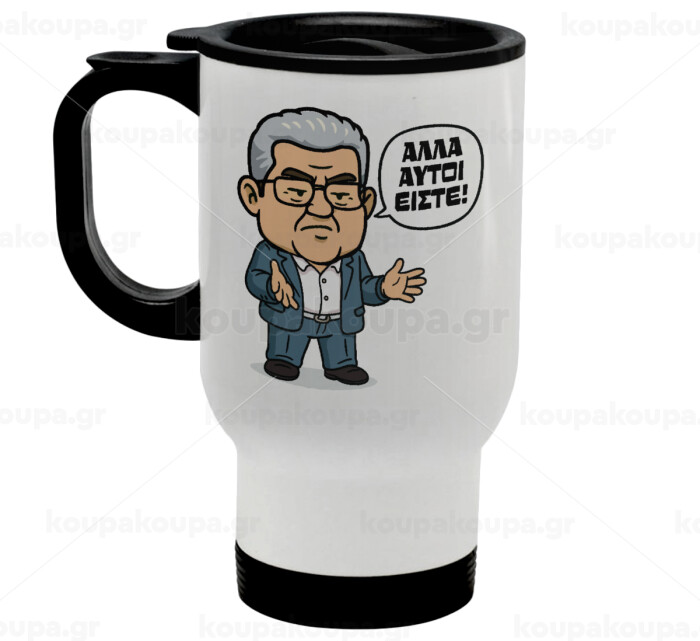 Κουτσούμπας, "Αλλά αυτοί είστε!", Stainless steel travel mug with lid, double wall white 450ml