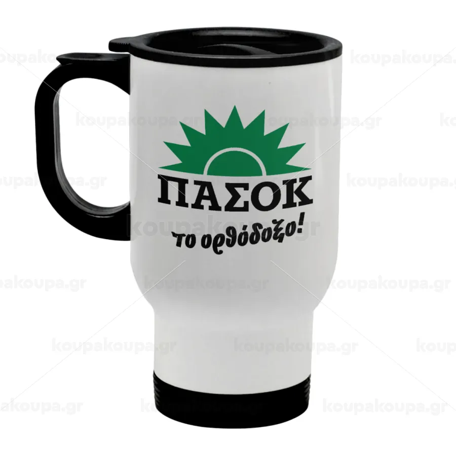 PASOK the orthodoxo, Stainless steel travel mug with lid, double wall white 450ml