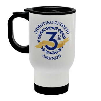 Έμβλημα Σχολικό μπλε, Stainless steel travel mug with lid, double wall white 450ml