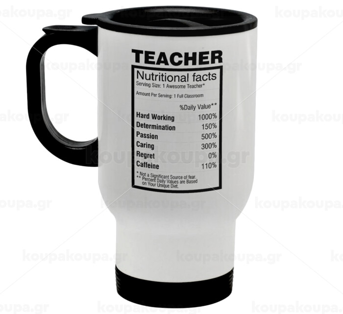 teacher nutritional facts, Stainless steel travel mug with lid, double wall white 450ml