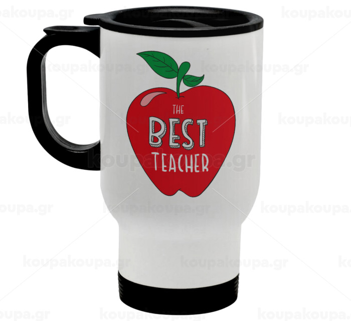 Best teacher, Stainless steel travel mug with lid, double wall white 450ml